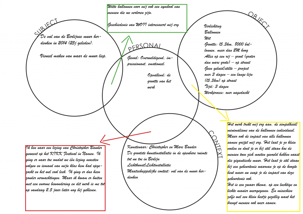 Het werk trekt mij erg aan, de simpelheid/minimalisme van de ballonnen individueel. Maar ook de impact van alle ballonnen samen grijpt mij erg. Het laat je zo klein voelen en doet je er bij stil staan hoe de mensen toen zich moeten gevoeld hebben naast die gigantische muur. Het laat je stil staan bij een gebeurtenis waarvan je op de hoogte bent maar nu snap je de impact van deze gebeurtenis ook.